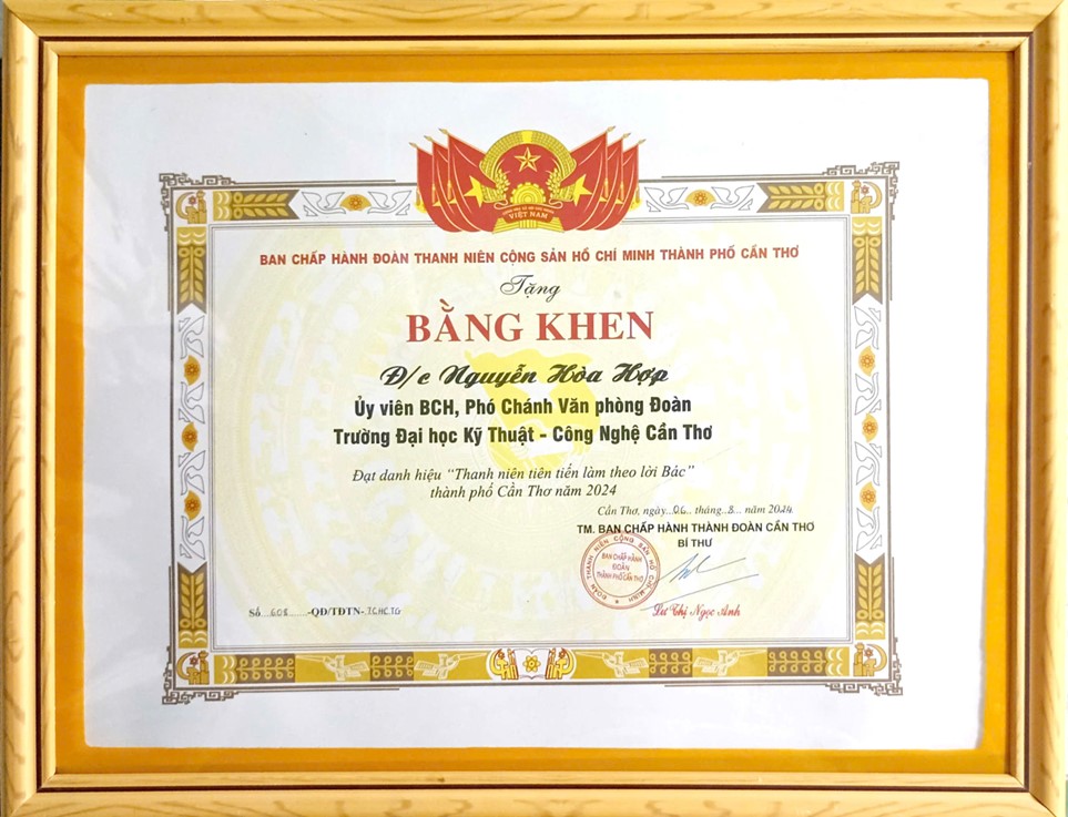Bằng khen đạt Danh hiệu “Thanh niên tiên tiến làm theo lời Bác” năm 2024