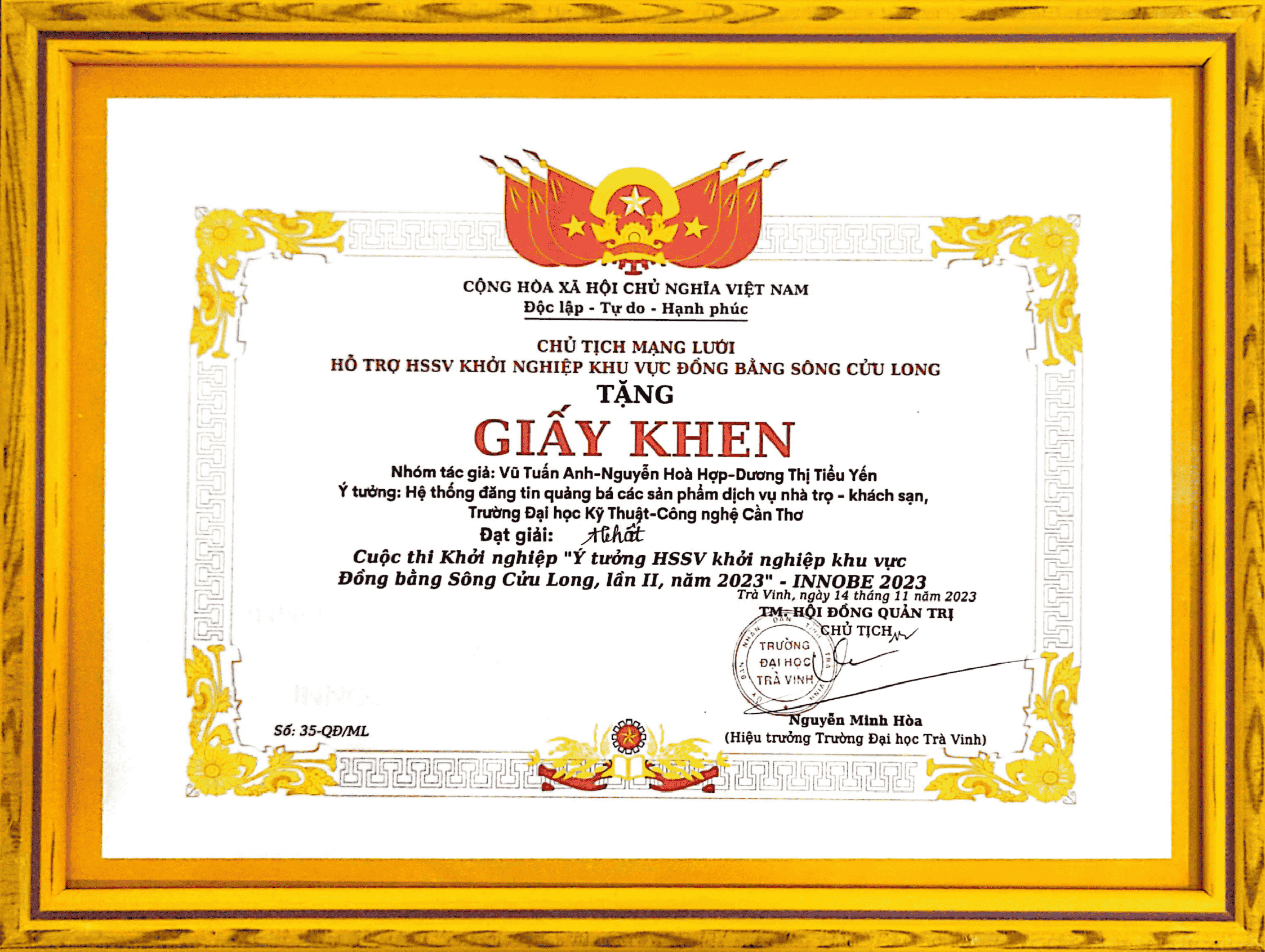 Đạt giải nhất Cuộc thi Khởi nghiệp “Ý tưởng HSSV khởi nghiệp khu vực Đồng bằng Sông Cửu Long"