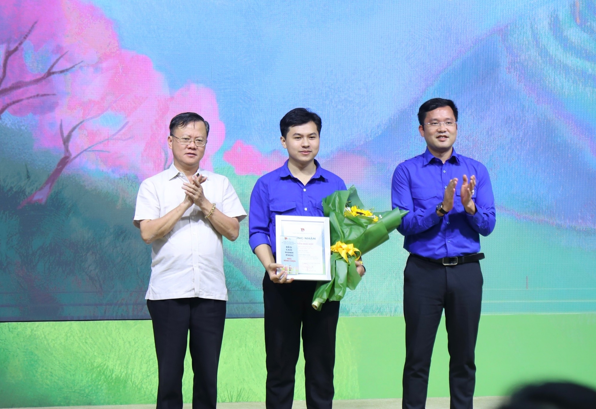 Đồng chí Nguyễn Thái An, Trưởng ban Tuyên giáo Trung ương Đoàn và đồng chí Nguyễn Thị Kim Dung, Trưởng ban Tuyên giáo Hội LHPN Việt Nam trao giải ba cho tác giả với tác phẩm "Xóa bỏ định kiến".