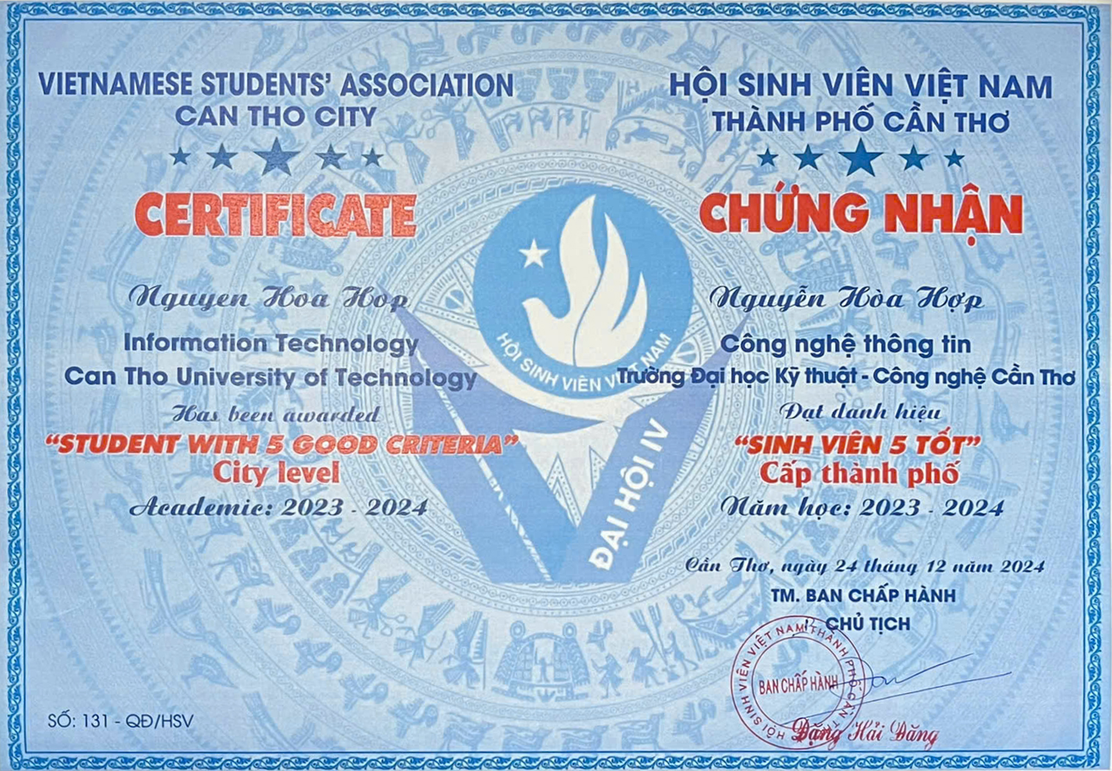 Danh hiệu Sinh viên 5 tốt cấp Thành phố năm học 2023 - 2024