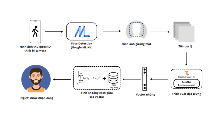 Đưa ảnh vào mô hình FaceNet đã được tối ưu hóa để trích xuất ra vector đặc trưng 512 chiều.